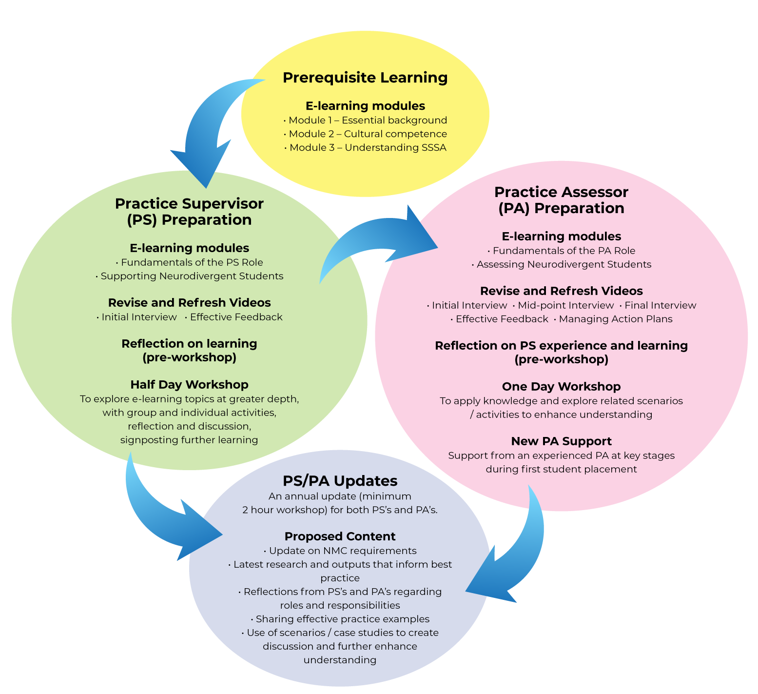The route map below shows the expected components for the preparation of staff who are going to be undertaking a practice supervisor or practice assessor role.
